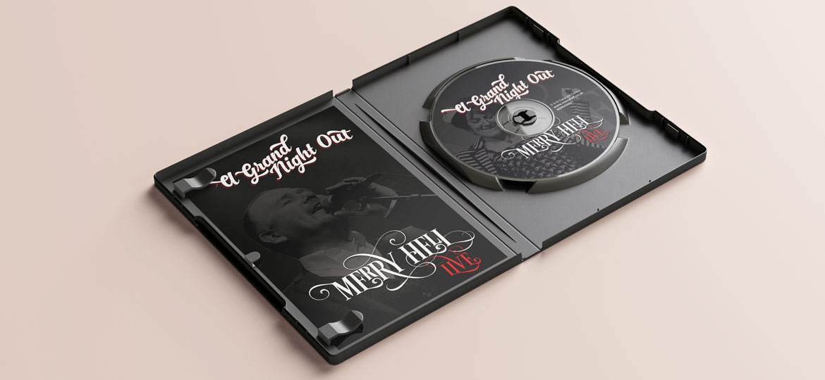 Being a huge fan of my hometown band The Tansads in the 90’s (for whom I designed my first ever website!) I was excited to hear that after a sold out weekend of reunion gigs the former members of the Tansads were again to start producing music. In 2011 Merry Hell was born. Since then I have designed and built their website, designed album, single, dvd covers, posters, press adverts… whatever was needed.