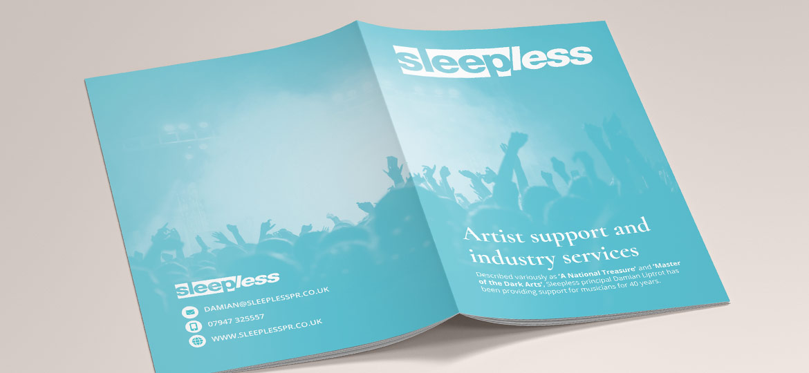 Described variously as ‘A National Treasure’ and ‘Master of the Dark Arts’, Sleepless principal Damian Liptrot has been providing support for musicians for 40 years. As a long time client Damian got in touch to help develop the online presence and some printed material for his music industry PR business.